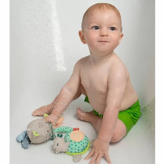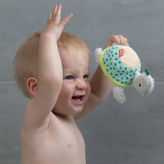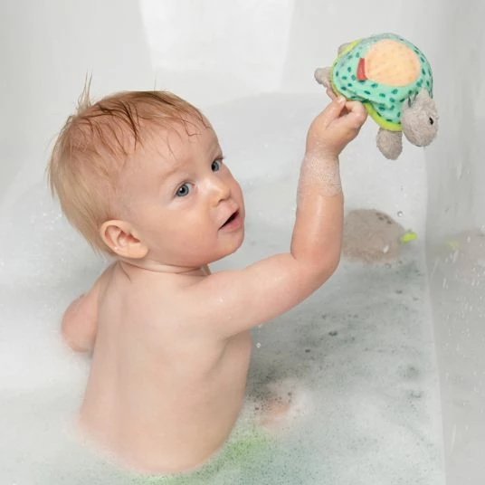Die süße Schildkröte lädt mit kunterbunten Farben und den kuschelig weichen Stoffen zum Greifen, Tasten und Betrachten ein. Sie zieht die Neugierde und Aufmerksamkeit Deines kleinen Lieblings immer wieder aufs Neue auf sich und bietet so eine tolle Unterhaltung als niedlicher Wasch-Helfer. Die fröhliche Gestaltung macht den Bade-Schwamm zu einer tollen Geschenkidee, die das Babybad zu einem tollen Erlebnis macht.