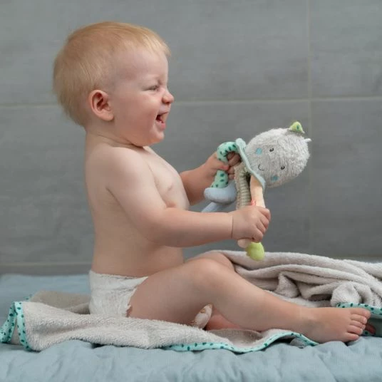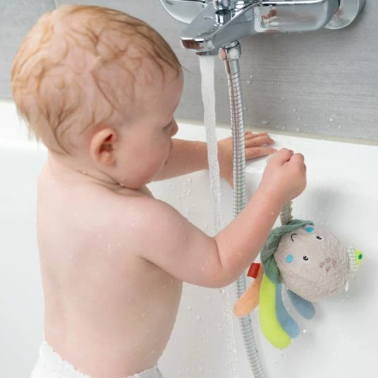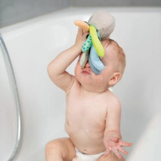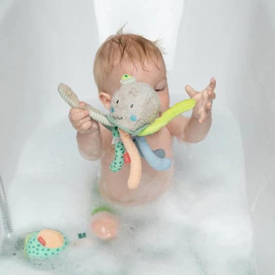 Gemeinsam mit dem Fehn Badetier Oktopuskommt in der Badewanne so schnell keine Langeweile auf. Mit dem niedlichen Meeresbewohner kann Dein Kleines seine motorischen FΓ€higkeiten, seine Wahrnehmung und seine Auge-Hand-Koordination wΓ€hrend der Baderoutine spielerisch fΓΆrdern. Der sΓΌΓe, schwimmende Oktopus mit lΓ€dt mit seinen vielen Armen und den kuschelig weichen Stoffen zum Greifen, Tasten und Betrachten ein.