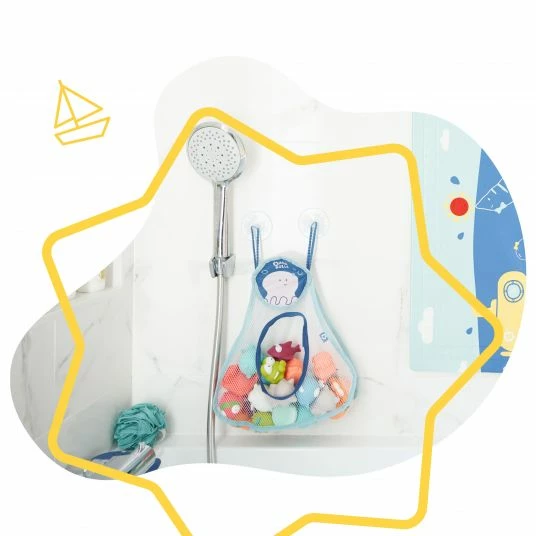 Auch wรคhrend dem Babybad darf unterhaltsames Spielzeug nicht fehlen. Doch wohin soll es nach dem Wasserspaร aufgerรคumt werden? Das Badabulle Aufbewahrungsnetz fรผr Bade-Spielzeug – Ocean ist der ideale Platz dafรผr nach dem Spielen. Mit 2 praktischen Saugnรคpfen lรคsst es sich platzsparend an der Wand befestigen. Das Spielzeug kann durch die groรe รffnung von Deinem kleinen Spatz in das Netz gelegt werden. So lernt er durch die Routine auch im Badezimmer Ordnung zu halten.