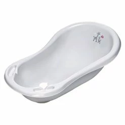 The Baby bathtub Giraffe β Grey offers plenty of space and enough armroomΒ to bathe your baby and keep him safely in the bathtub. As soon as the baby can sit on its own, it has plenty of space in the tub with the sΓΌΓem giraffe motif for splashing around and playing. The tub is stable and unbreakable. Thanks to its 84 x 45 cm size, the tub can be used for a long time, even when your child grows taller. The integrated drain makes it easy to empty the water after bathing. The modern, timeless design fits perfectly into any bathroom with its simple grey-white appearance. Matching the bathtub there is also the step stool, the toilet seat and the toilet seat for toddlers. Just have a look at our shop.