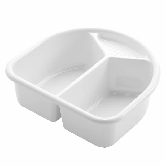 Die Waschschüssel Top / Bella Bambina in Weiß von Rotho Babydesign eignet sich perfekt für die schnelle Reinigung Deines Babys zwischendurch. Dank getrennter Schalen kannst Du eine für sauberes Wasser und die andere zum Auswaschen des Waschlappens benutzen. Zwischen den zwei Kammern befindet sich eine praktische Seifenablage. So hast Du stets alles griffbereit, was Du für die Pflege Deines kleinen Schatzes benötigst.