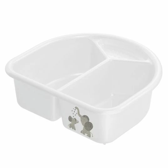 The Washbasin Top / Bella Bambina in design Modern Elephants by Rotho Babydesign is perfect for the quick cleaning of your baby in between. Thanks to separate trays, you can use one for clean water and the other to wash out the washcloth. Between the two chambers there is a practical soap holder. So you always have everything you need for the care of your little treasure at hand. The washer is adorned by a sΓΌi;e printing with 2 elephants.