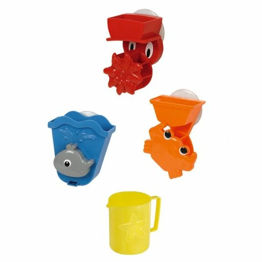 With the ABC Bath Game Set you won’t get bored in the bathtub anymore. The three little animals can be attached to the bathtub with the suction cup one on top of the other or side by side. With the cup water is poured into the water wheels and funnels and the bathing fun begins.