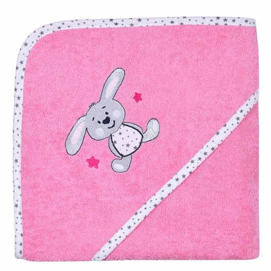 The fluffy soft 80 x 80 cm hooded bath towel Hase in bubblegum from Wörner not only absorbs the nourishment, but also keeps your child comfortably warm after bathing. You can just wrap your baby in the towel and pull the hood over his little dog – that’s how it’s protected from cold draughts. The extra absorbent terry is made of pure, skin-friendly cotton.