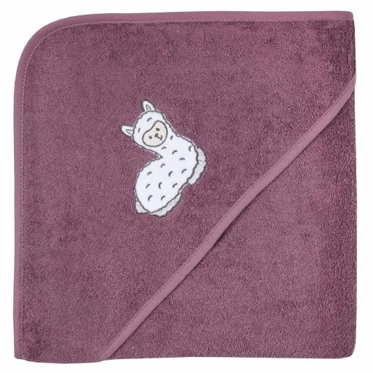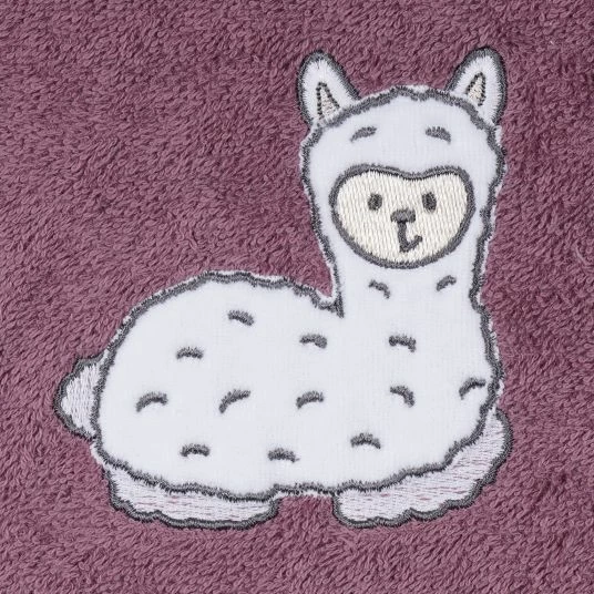 1 Wörner Kapuzenbadetuch 100 x 100 cm – Stickerei Lama – Mauve