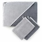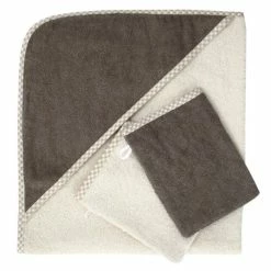 The fluffy-soft 3er Set hood bath towel with 2 washing gloves in nature light brown by Wörner is exactly the right thing for your offspring, because it keeps your child comfortably warm after bathing. You can just wrap your darling in the towel and pull his hood over his little dog – so it is protected from cold air. The extra absorbent towelling made of pure cotton is particularly comfortable to wear and can be machine washed at 60° C. The towelling is made of pure cotton.