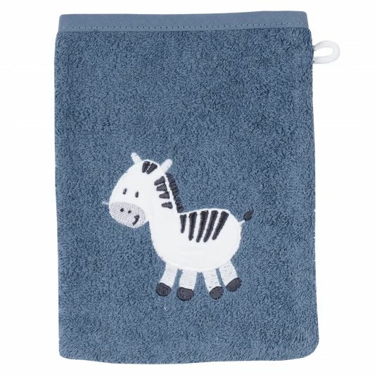 1 Wörner Waschhandschuh – Stickerei Zebra – Stahlblau