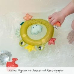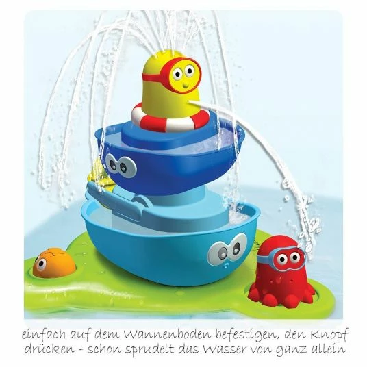 With the water feature fountain by Yookidoo the bathtub becomes a humid and cheerful playground for small children from about 12 months. Simply attach the base of the fountain to the bottom of the bathtub, press the orange button and the water bubbles all by itself.